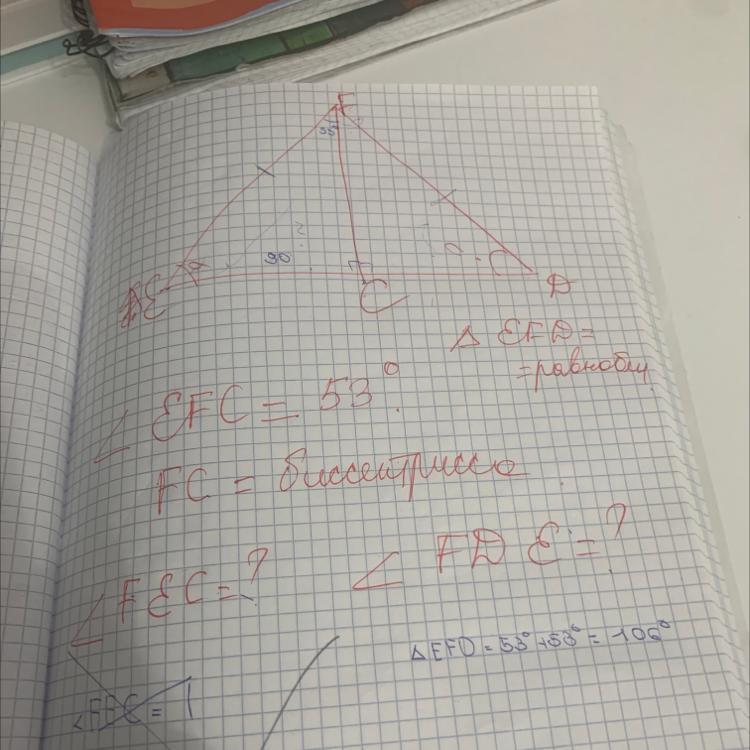 Ответ : <FEC=37 градусов ; <FDE=37 градусов
