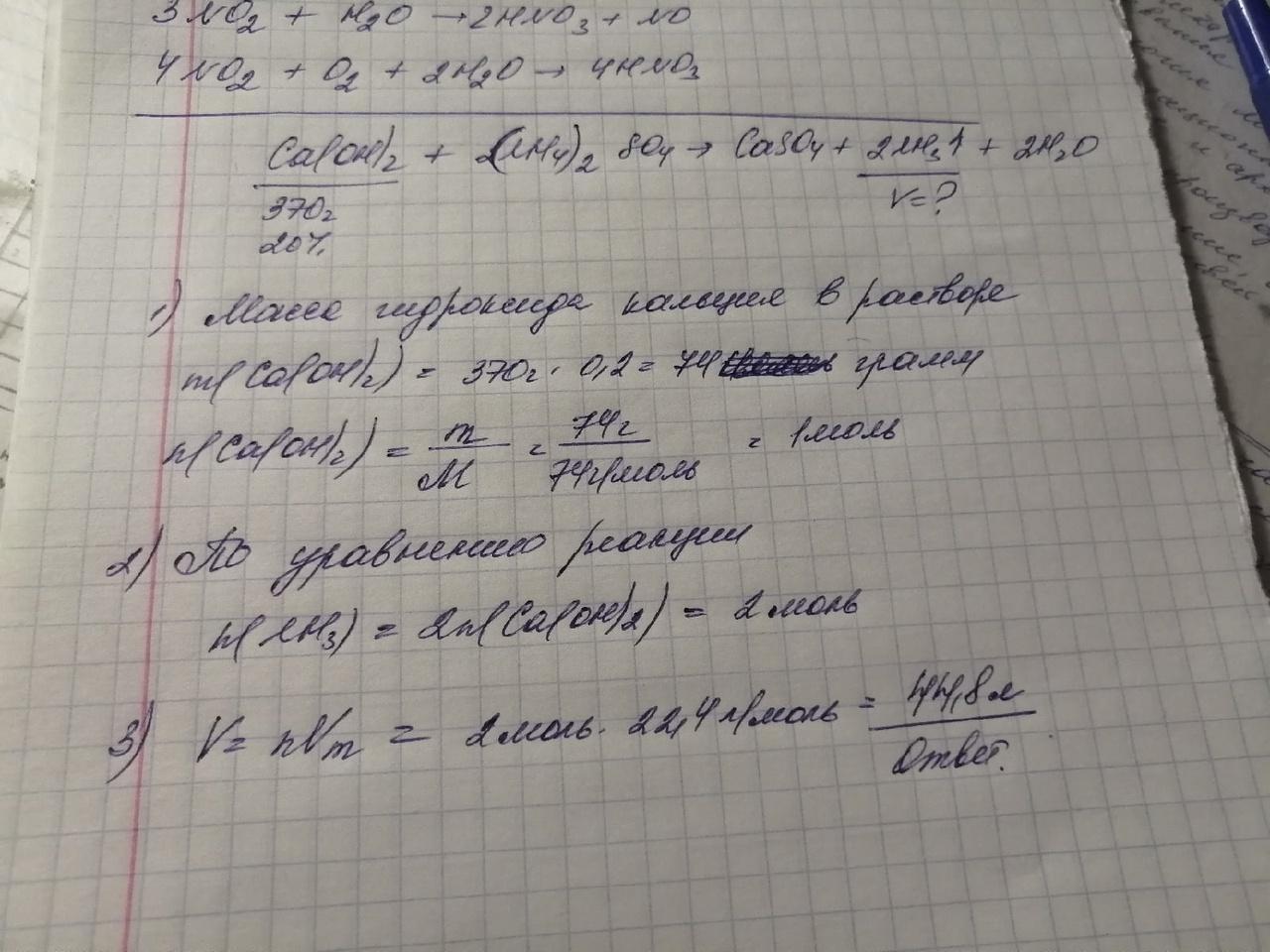 Определите объем аммиака, выделившегося при взаимодействии 370г 20%-го раствора гидрооксида кальция с сульфатом аммония.
