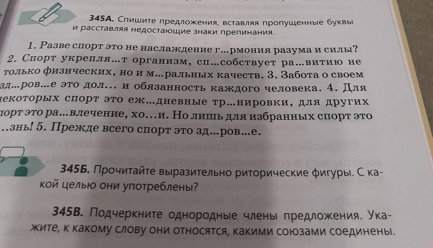 345В. Подчеркните однородные члены предложения. Ука- жите, к какому слову они относятся, какими союзами соединены.