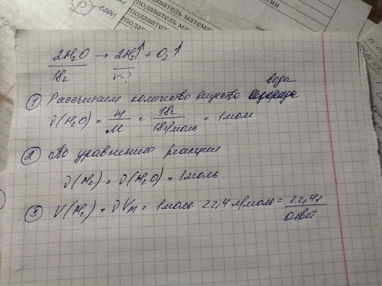 найдите объем водорода (н.у.), который образовался при разложении 18 г воды (вода разложилась на водород и кислород).