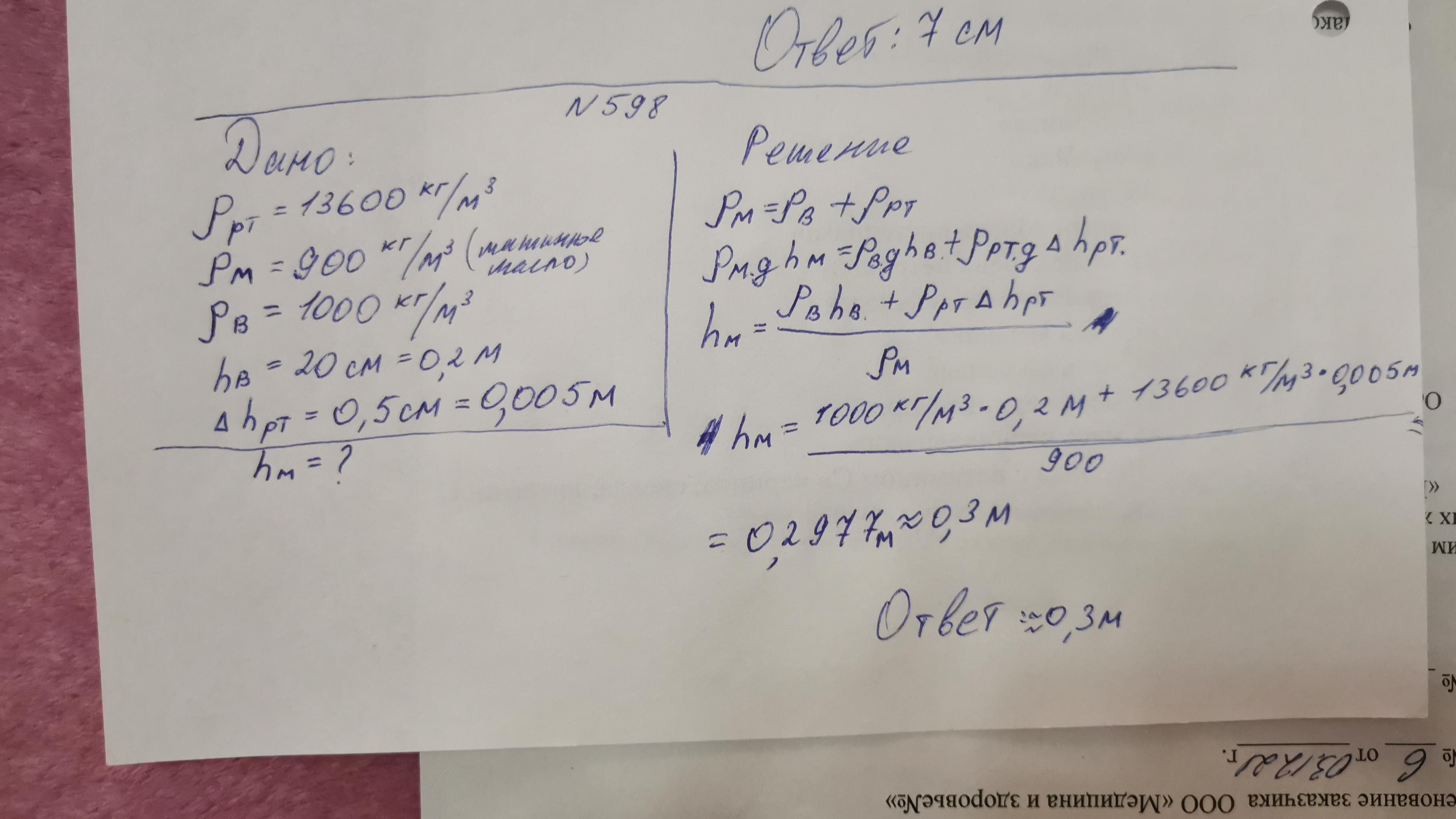 та столба ртути в колене, где налито масло, ниже, чем вы-