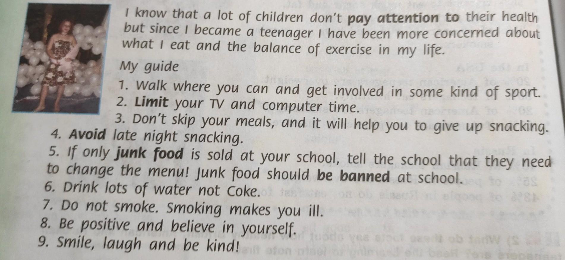 Я знаю что очень много детей не обращают внимания на свое здоровье, но с тех пор, как я стал подростком, я стал больше задумываться о том что я ем и об балансе физических упражнений в моей жизни.