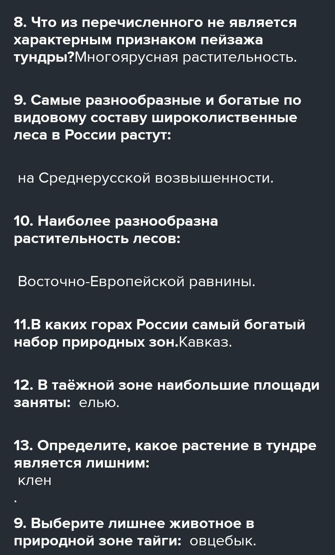 1. тундра а) о. Вайгач ж) север европейской части РФ