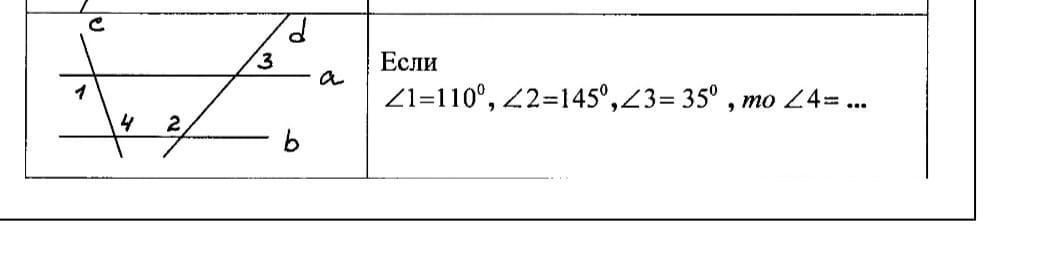 Если ∠1=110°, ∠2=145°, ∠3=35°, то ∠4=110°