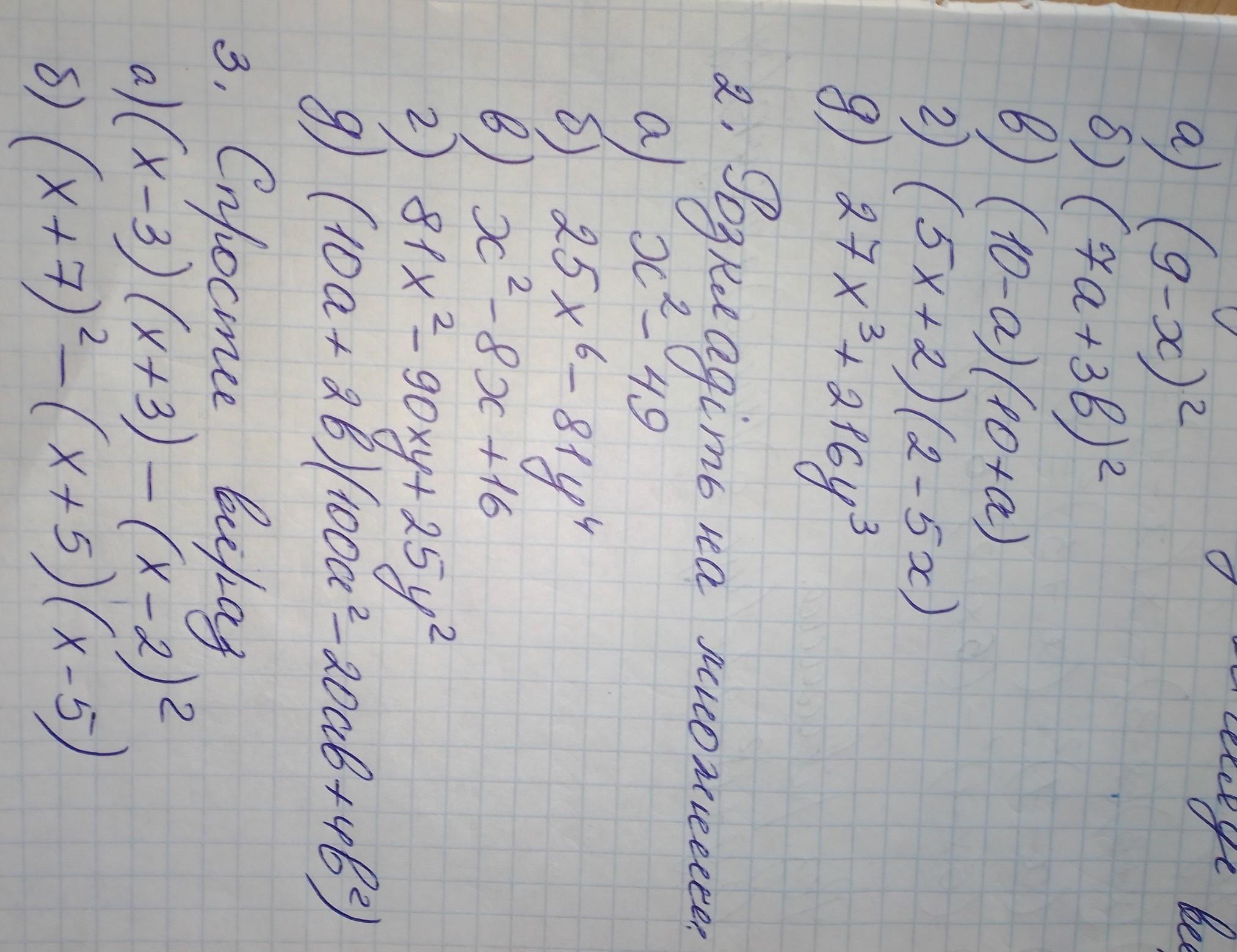 б) (7a+3b)²= (7a)²+2×7a×3b+(3b)²= 49 a²+ 42ab+ 9b²