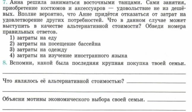 последнее задание сам, там нужно сказать от чего твоя семья отказывалась (там где альтернативная стоимость) и на что копила (следующая строчка)