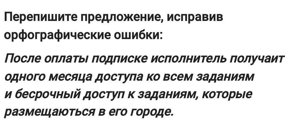 После оплаты подписки исполнитель получает один месяц доступа ко всем заданиям и бессрочный доступ к заданиям, которые размещаются в его городе.