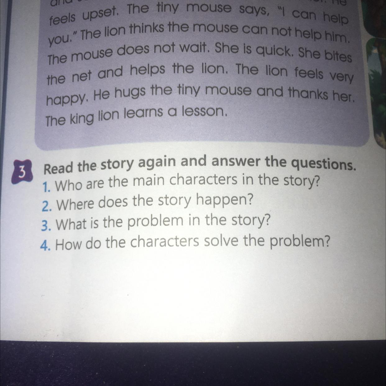 3 Read the story again and answer the questions.