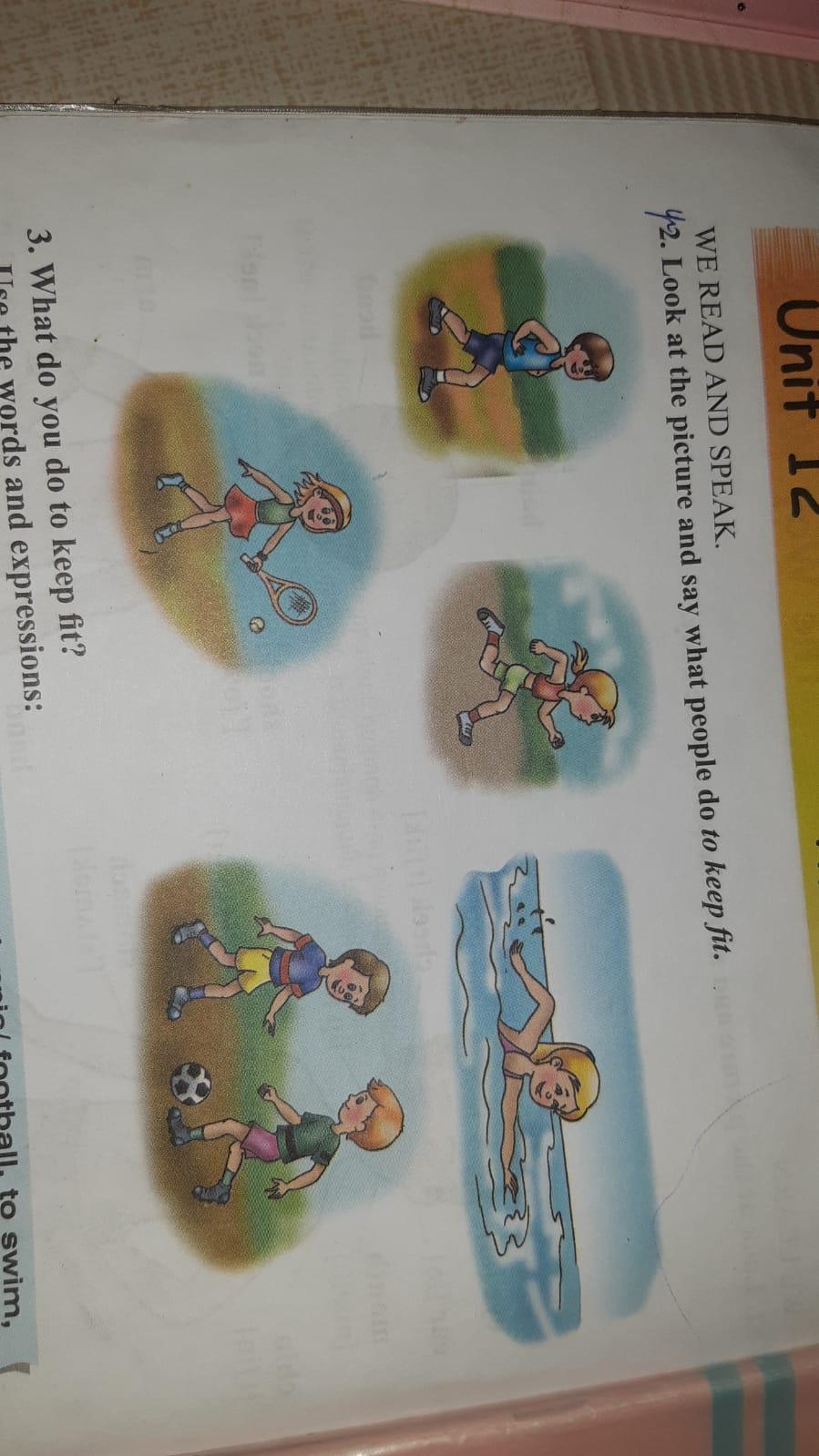 1. walk 2. run 3. swim 4. play tennis 5. play football