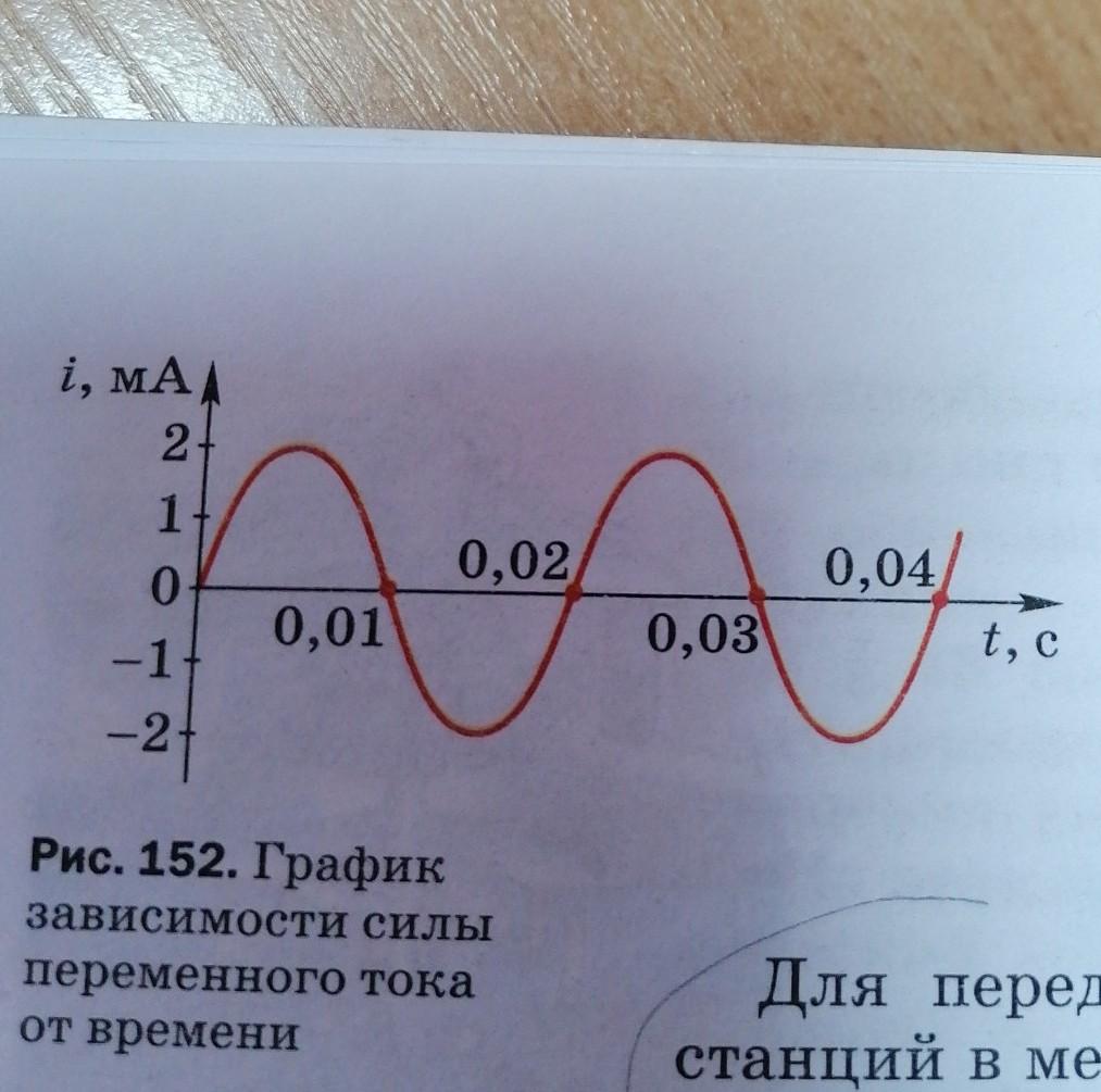 определите амплитуду и период переменного тока, Рассчитайте частоту переменного тока
