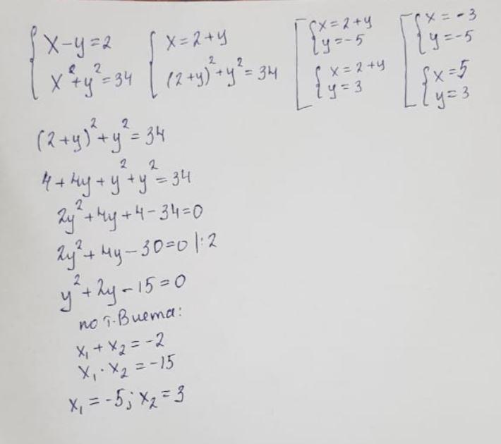 неверно. х-у=2 отсюда Находим х, х=2+у,