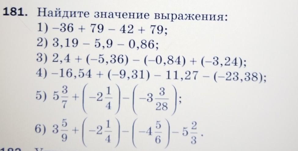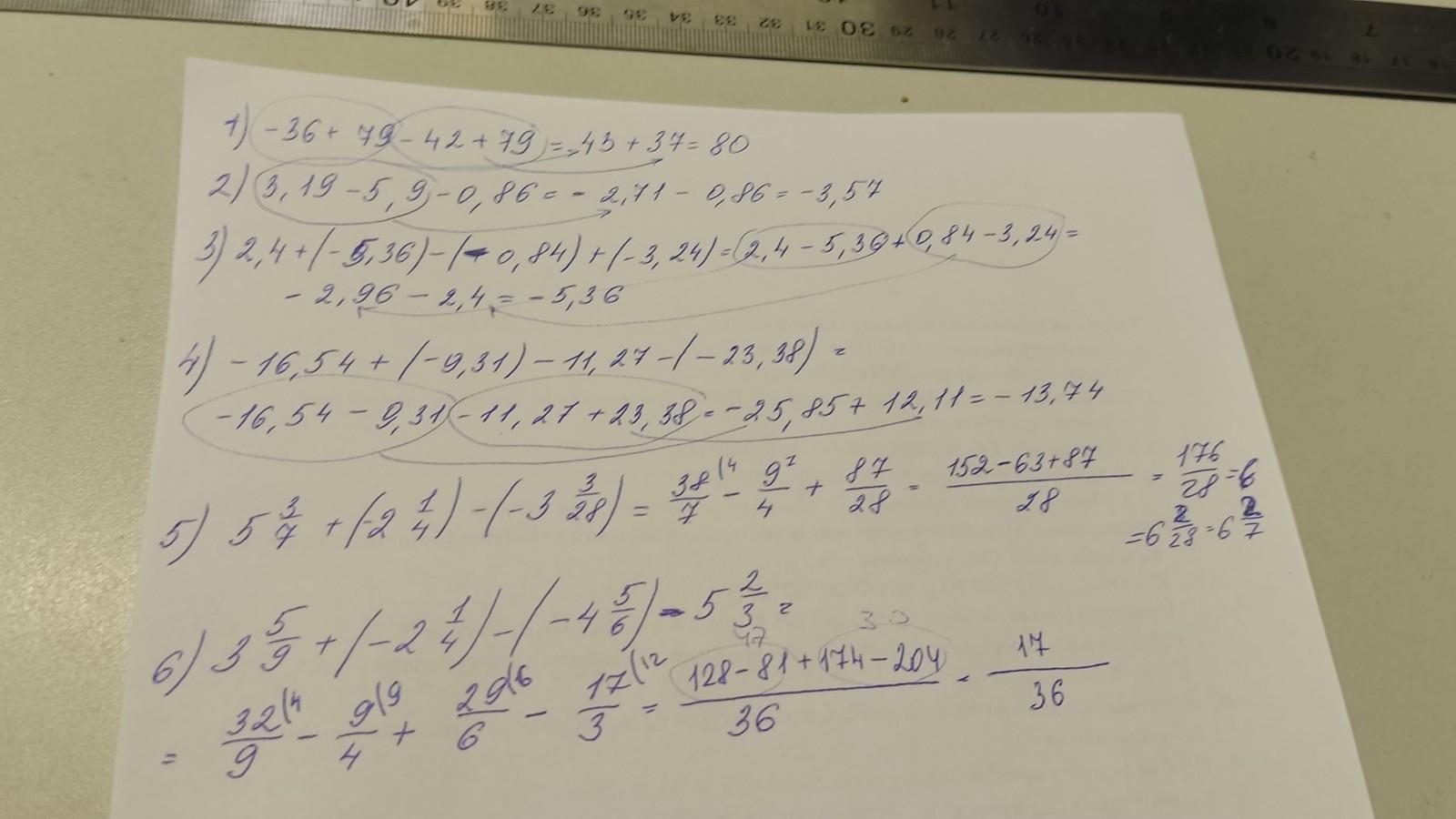 1) 80 2)-3,57 3)-5,36 4)-13,74 5)6 2/7 6) 7/36