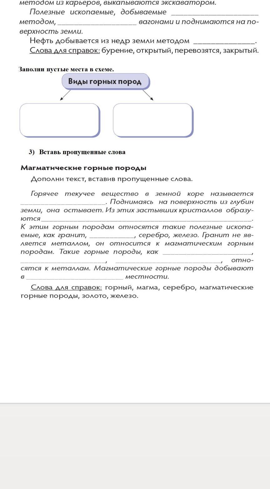 Горячее текучее вещество в земной коре называется МАГМА . Поднимаясь на поверхность из глубин земли, она застывает. Из этих застывших кристаллов образуются МАГМАТИЧЕСКИЕ ГОРНЫЕ ПОРОДЫ. К этим горным пополам относятся такие полезные ископаемые, как гранит, ЗОЛОТО, серебро, железо. Гранит не является металлом, он относится к магматическим горным породам. Такие горные породы, как ЗОЛОТО, СЕРЕБРО, ЖЕЛЕЗО, относятся к металлам. Магматические горные породы добывают в ГОРНОЙ местности.