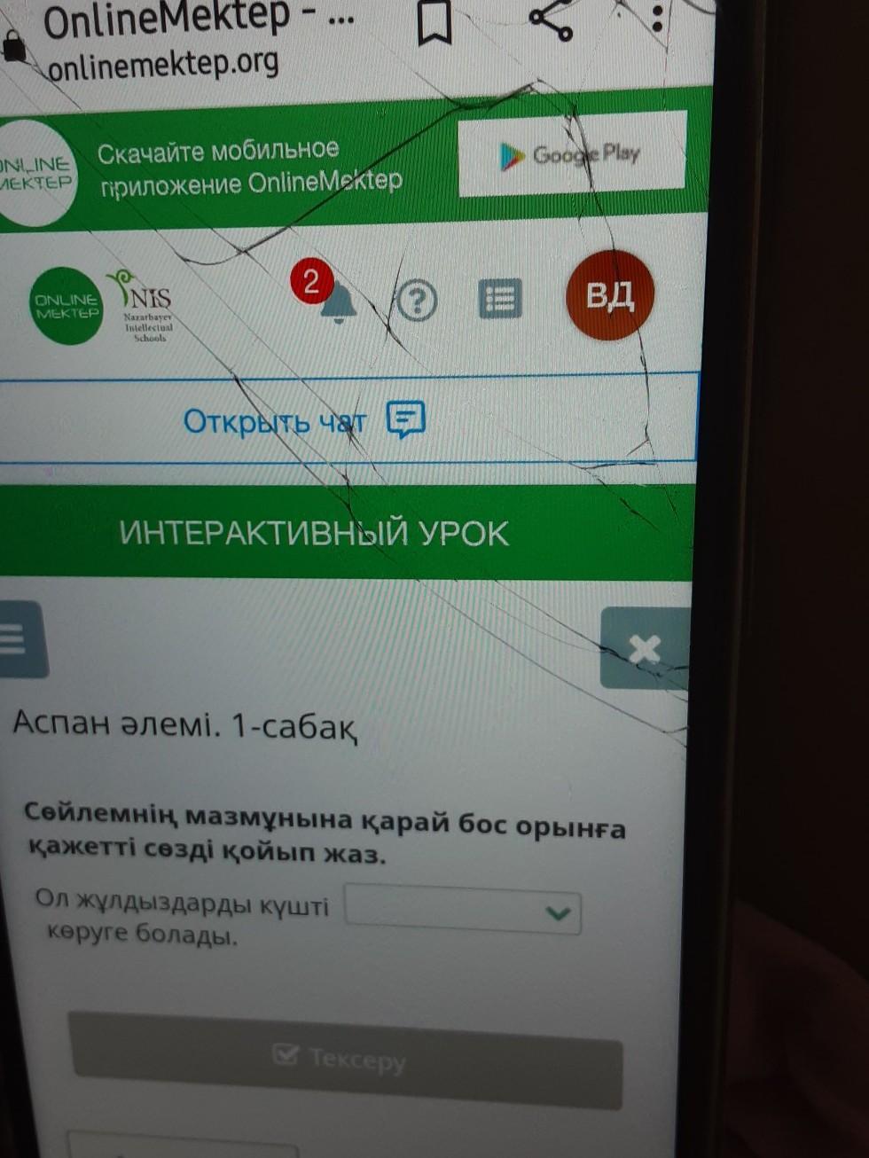 Аспан әлемі. 1-сабақ Сөйлемнің мазмұнына қарай бос орынға қажетті сөзді қойып жаз. Ол жұлдыздарды күшті көруге болады. Тексер помогите пожалуйста выбор: телескоппен, 6 мын, кус жолы
