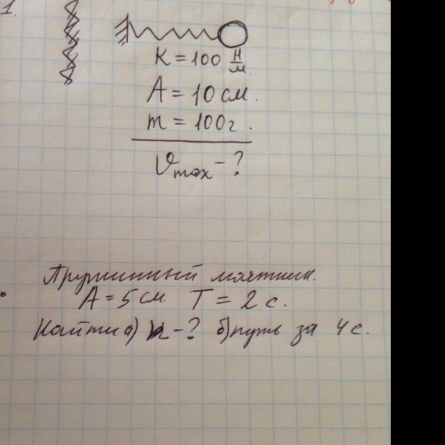 kA^2/2=mv^2/2 закон сохранения энергии потенциальная пружины переходит в кинетическую груза