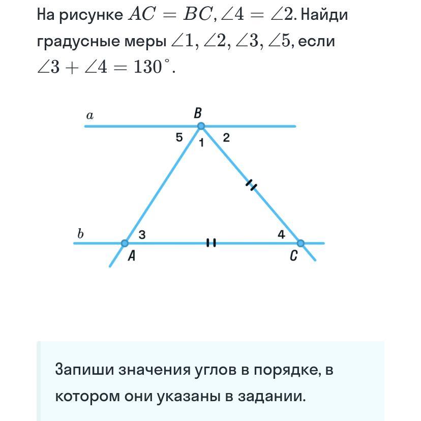 угол 3 = 5 по свойству, по этому же свойству узнаем угол 2