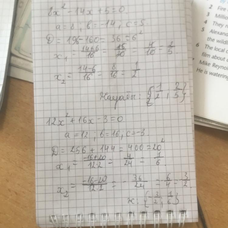 x₂ = (14 + √36)/(2*8) = (14 + 6)/16 = 20/16 = 1,25