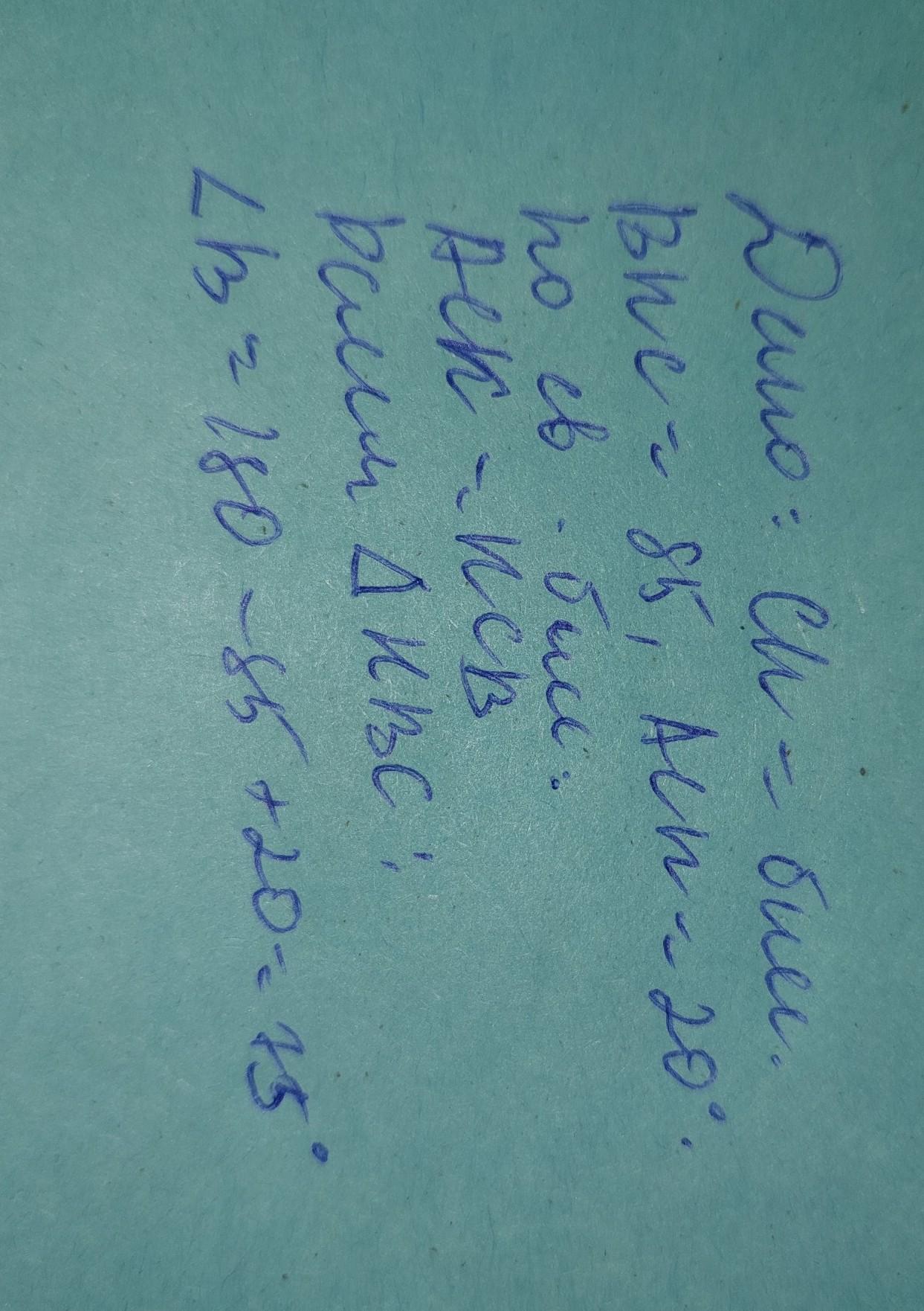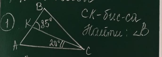 вычислим угол В. Сумма углов треугольника равен 180. Угол В = 180-20-85-75 ' Ответ 75 Биссектриса делит угол пополам , поэтому угол КСВ тоже равен 20