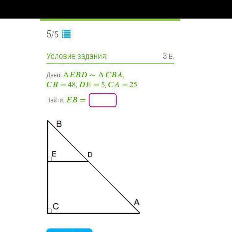 следовательно в треугольнике EBD мы знаем уже одну стороны которая равна 5