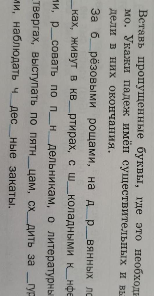 Вставь пропущенные буквы, где это не обходить. Укажи падеж имён существительное и выдели в них окончания.