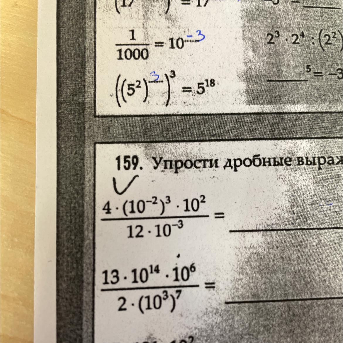 159 . . . . = ( 10⁻⁶ * 10² )/( 3* 10⁻³ ) = 10⁻⁶⁺²/( 3* 10⁻³ ) = 10⁻⁴/( 3* 10⁻³ ) =