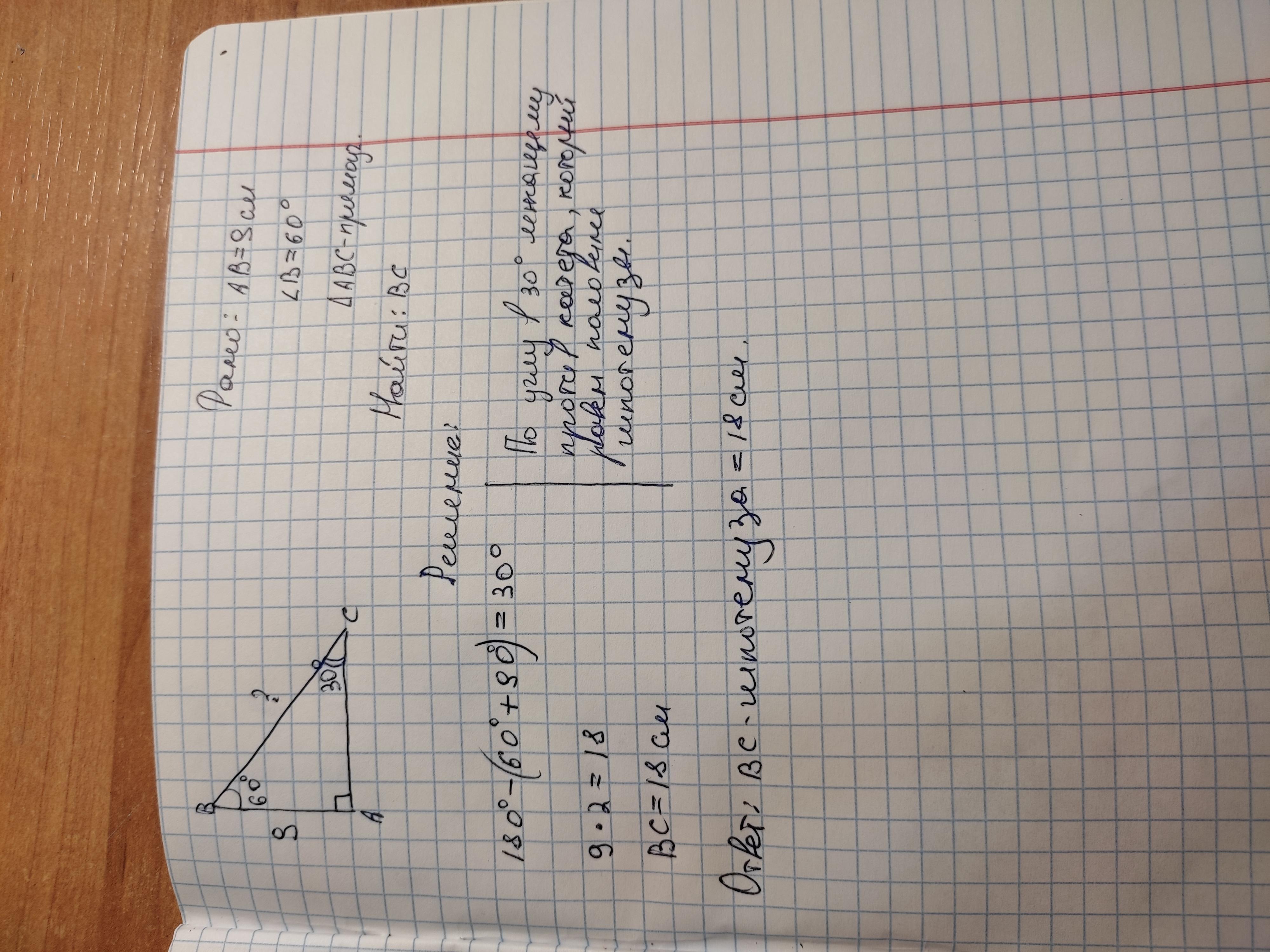 катет прямо угольного треугольника прилежащий к углу в 60* равен 9 см найдите гипотинузу треугольника