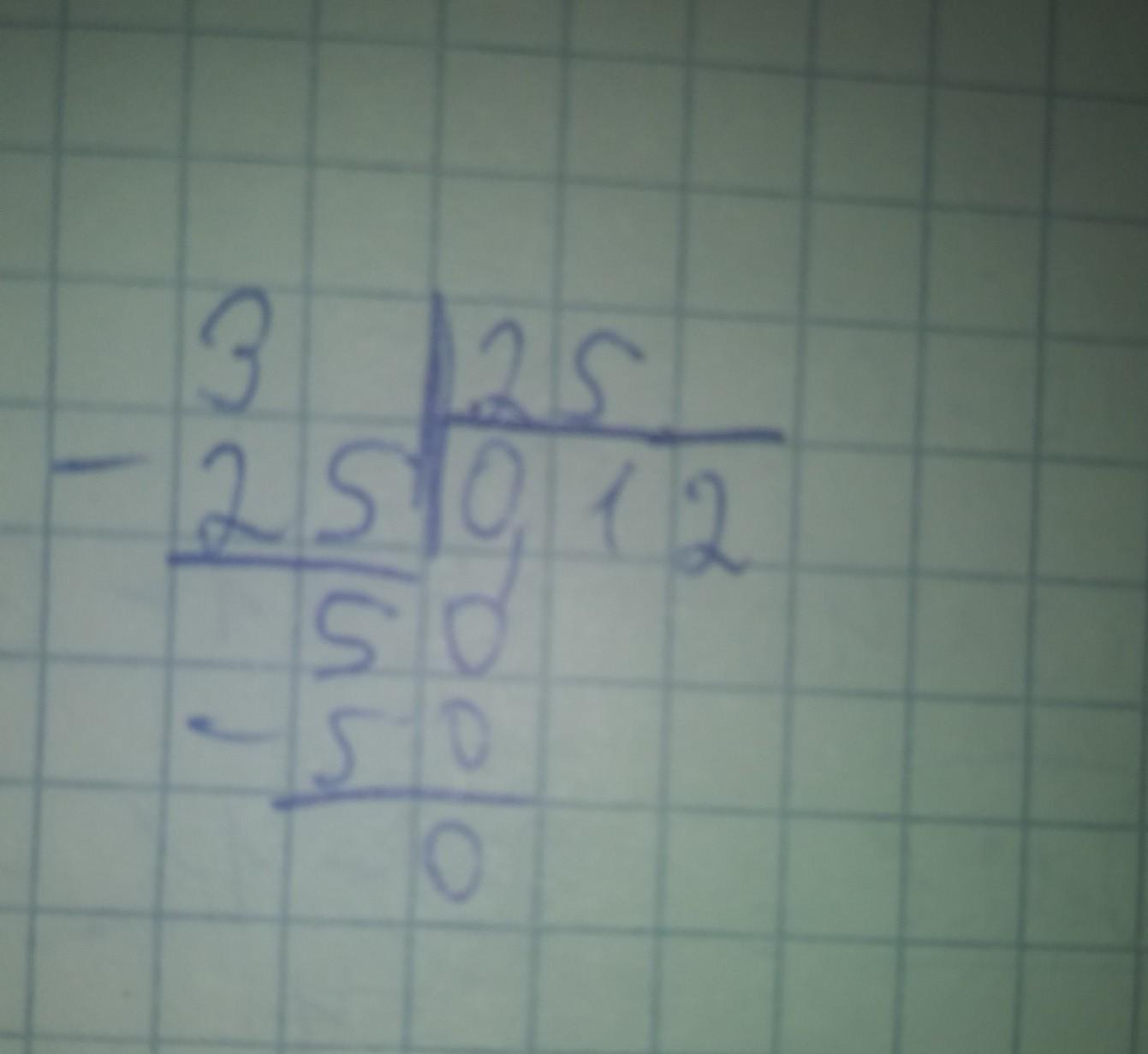 3 меньше 25 ,значит и ответ будет так же меньше 1 , припысываем 0 к ответу, и добавляем 0 к 3 ,получим 30