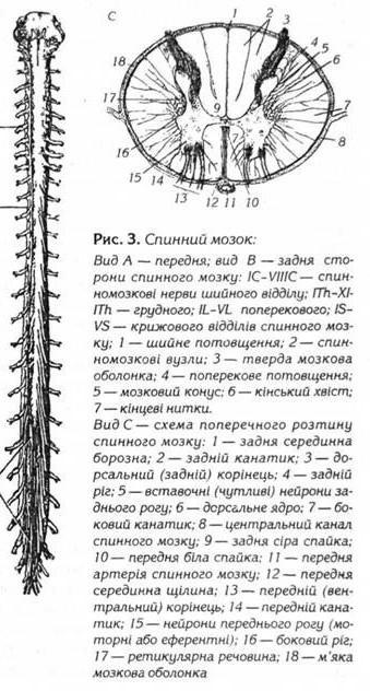 Рога серого вещества, канатики белого вещества, чувствительные корешки,двигательные корешки, переднюю борозду, заднюю борозду, мягкую оболочку, поясничную артерию