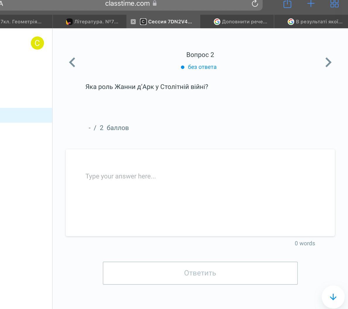 Ответ: Жанна Д'Арк, Орлеанская дева (1412- 1431) — народная героиня Франции. В ходе Столетней войны возглавила борьбу французов против англичан, в 1429 году освободила город Орлеан от осады.