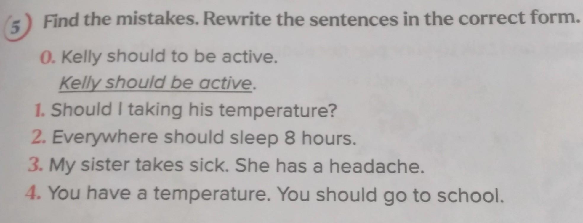4. You have a temperature. You shouldn't go to school. (У тебя температура. Тебе не стоит идти в школу)