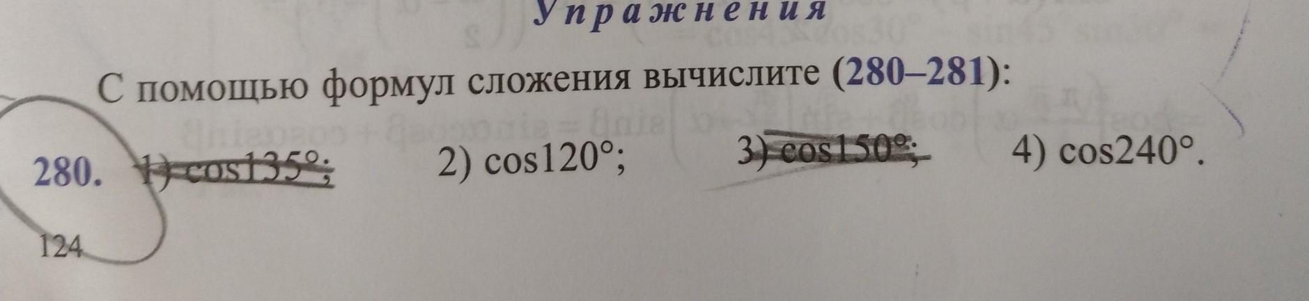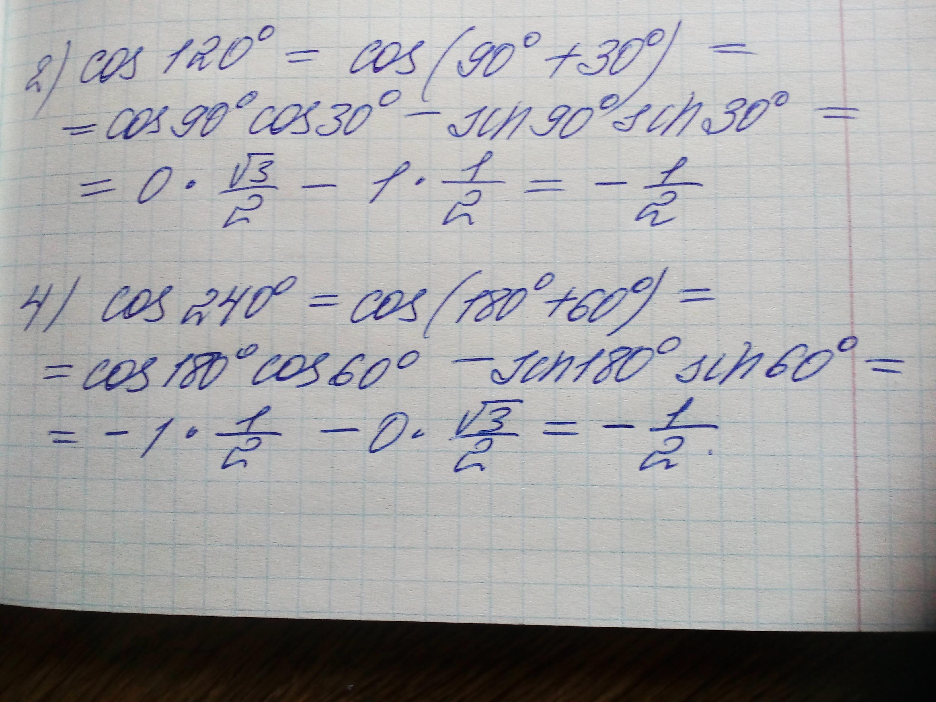 cos240°=cos(270°-30°)=-cos30°=-√3/2 cos α будет положительным в 1 и 4 четверти в остальных он имеет знак (-)