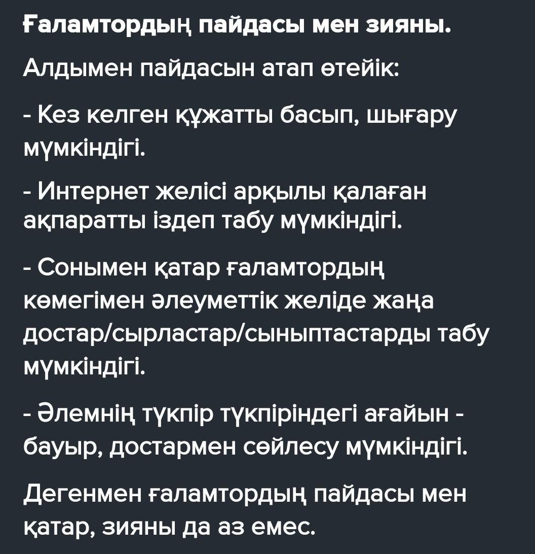 2) Ғаламтордың алдында көп елдер мен адамдар отырады . Ғаламтордан барлығы көрсетілген . Тіпті оқушыларға арналған дайын үй жұмысы бар.