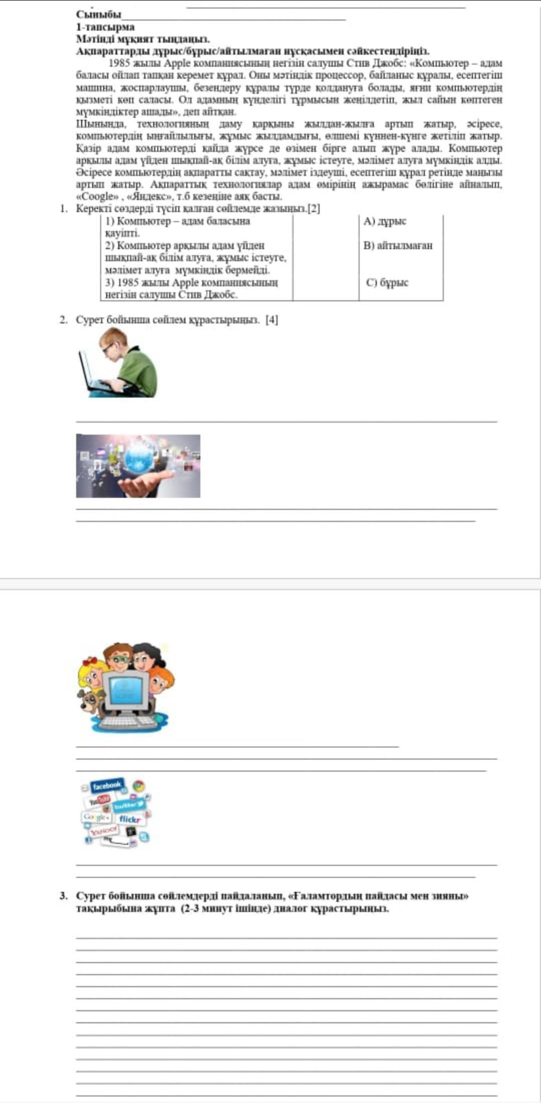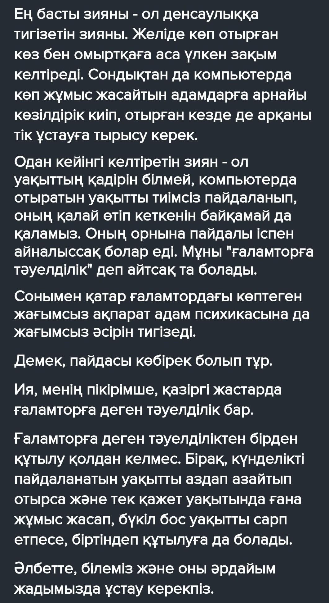 3) Компьютер мен ғаламтордың арқасында дүниежүзі бірн- бірі көріп отырады. О жақтағы адам мен бұл жақтағы адамдар бір - бірін қиындықсыз көреді .
