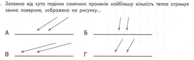залежно від кута падіння сонячних променів найбільшу кількість тепла отримуєземна поверхня зображена на рисунку...
