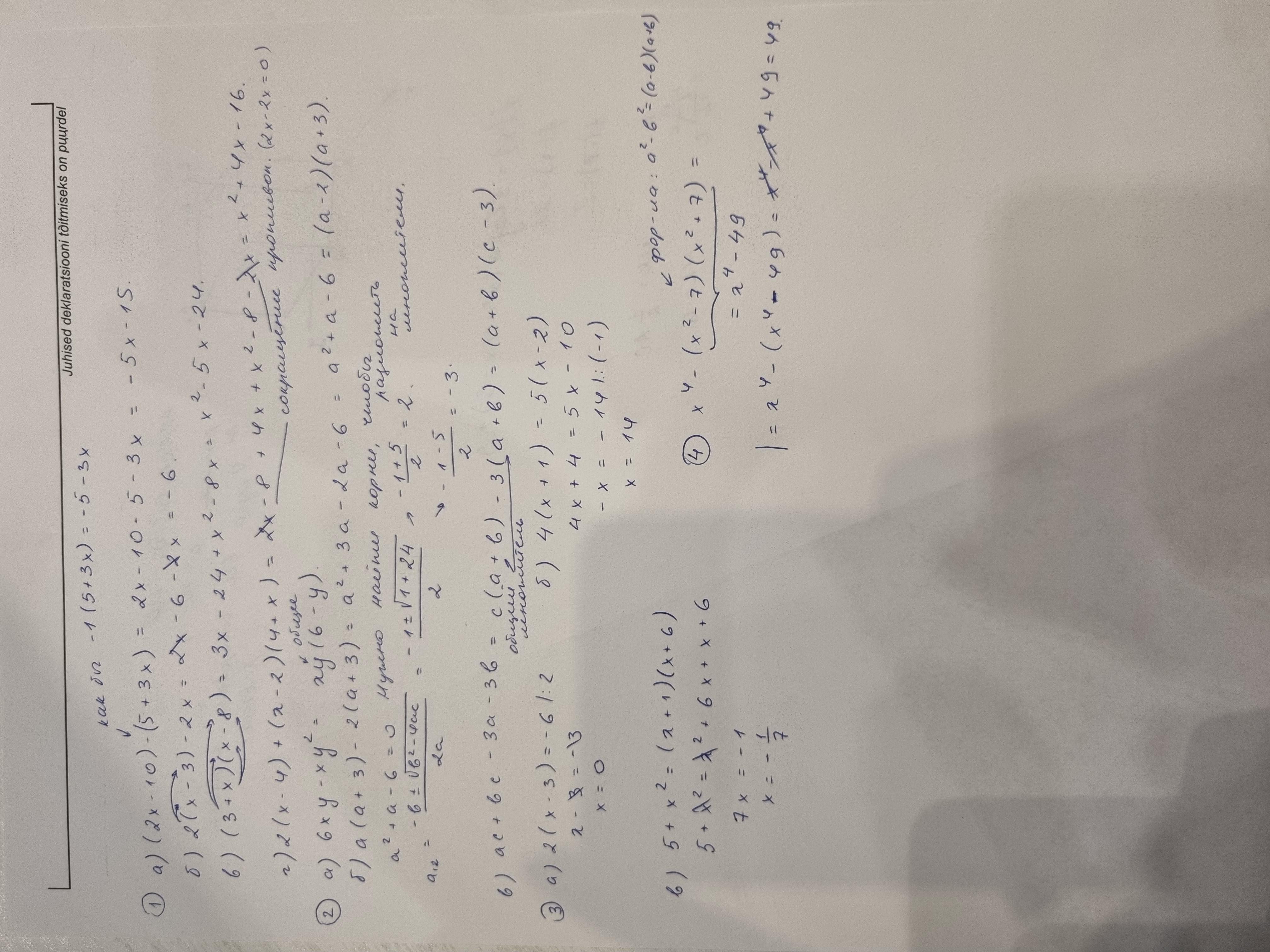 4. Докажите, что при любом значении х, значение выражения х4 – (х2 - 7)(х2 + 7) равно 49.