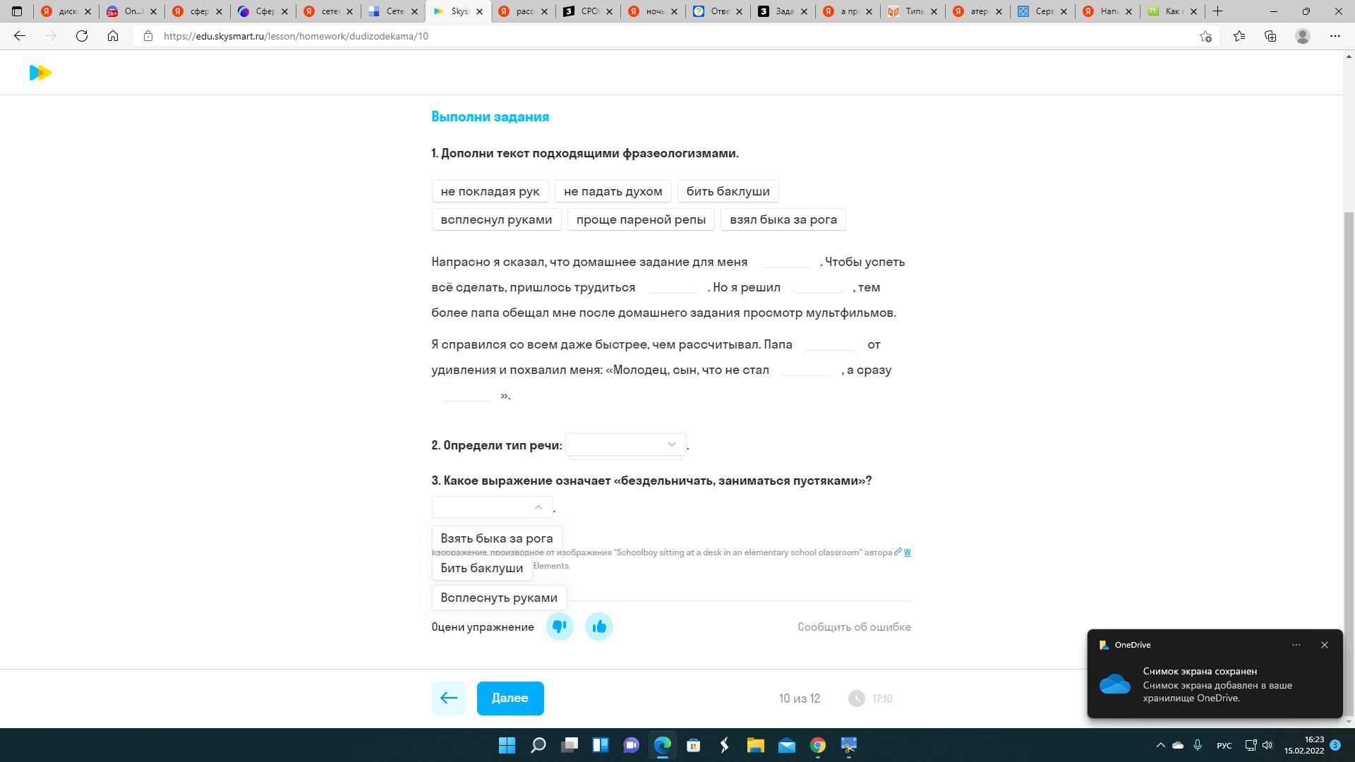 проще пареной репы, не покладая рук, не падать духом, всплеснул руками, бить баклуши, взял быка за рога