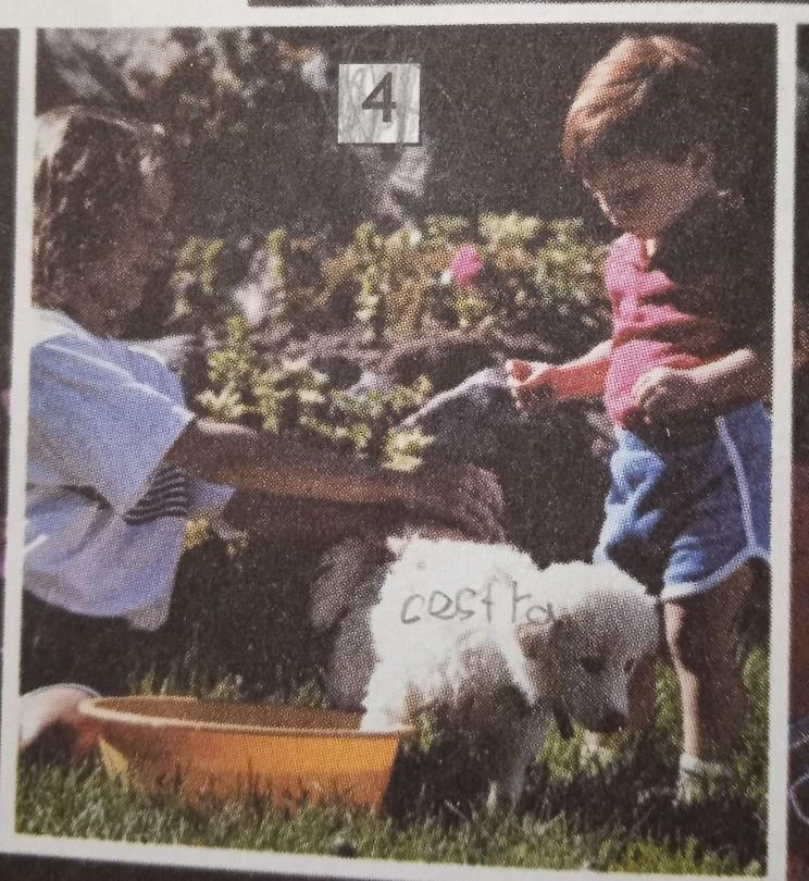 Apparently the father and son are playing with the dog or washing it because I see a basin of water.