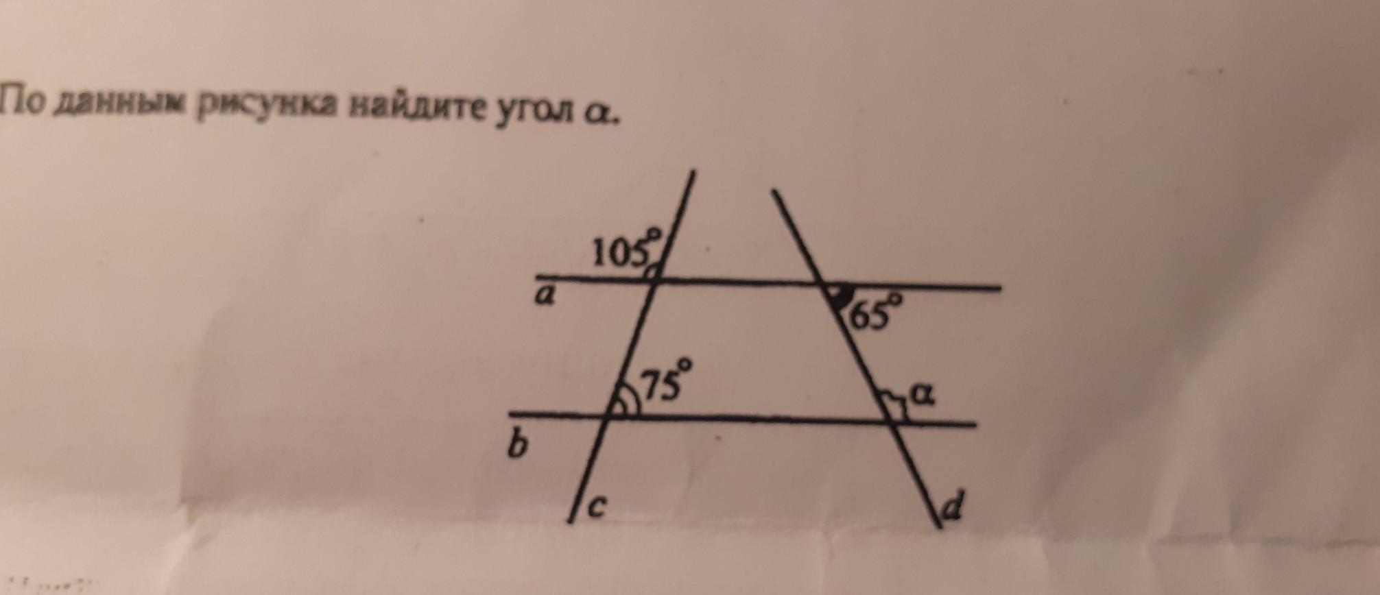 = 360⁰ - 105⁰ - 75⁰ - 115⁰ = 65⁰ (сумма углов четырёхугольника равна 360⁰)