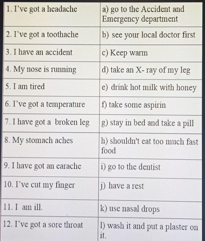 помогите , объяснение тут -> Поєднайте дві колонки, підберіть пораду до проблеми зі здоров'ям