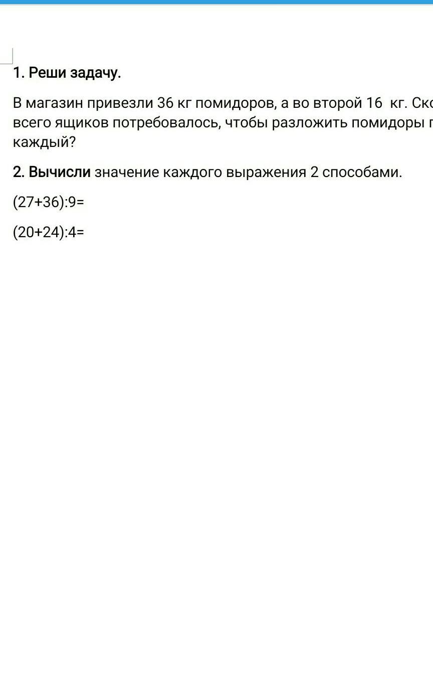 в магазин привезли 36г помидора а во второй 16 г Сколько всего ящиков понадобилось чтобы разложить помидоры по 4 кг в каждой