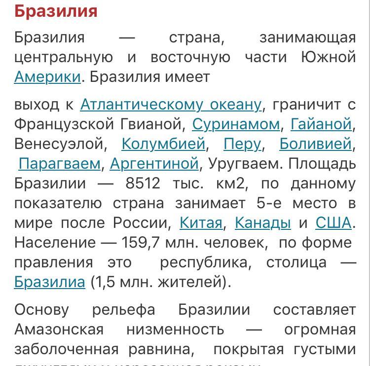 ДАЮ 100 БАЛОВ УМОЛЯЮ сообщение об одной из страны Южной Америки: Бразилия, Аргентина, Венесуэла, Парагвай, Гайана, Суринам, Гвиана, Эквадор, Уругвай напишите много хз средне но не 2 слова