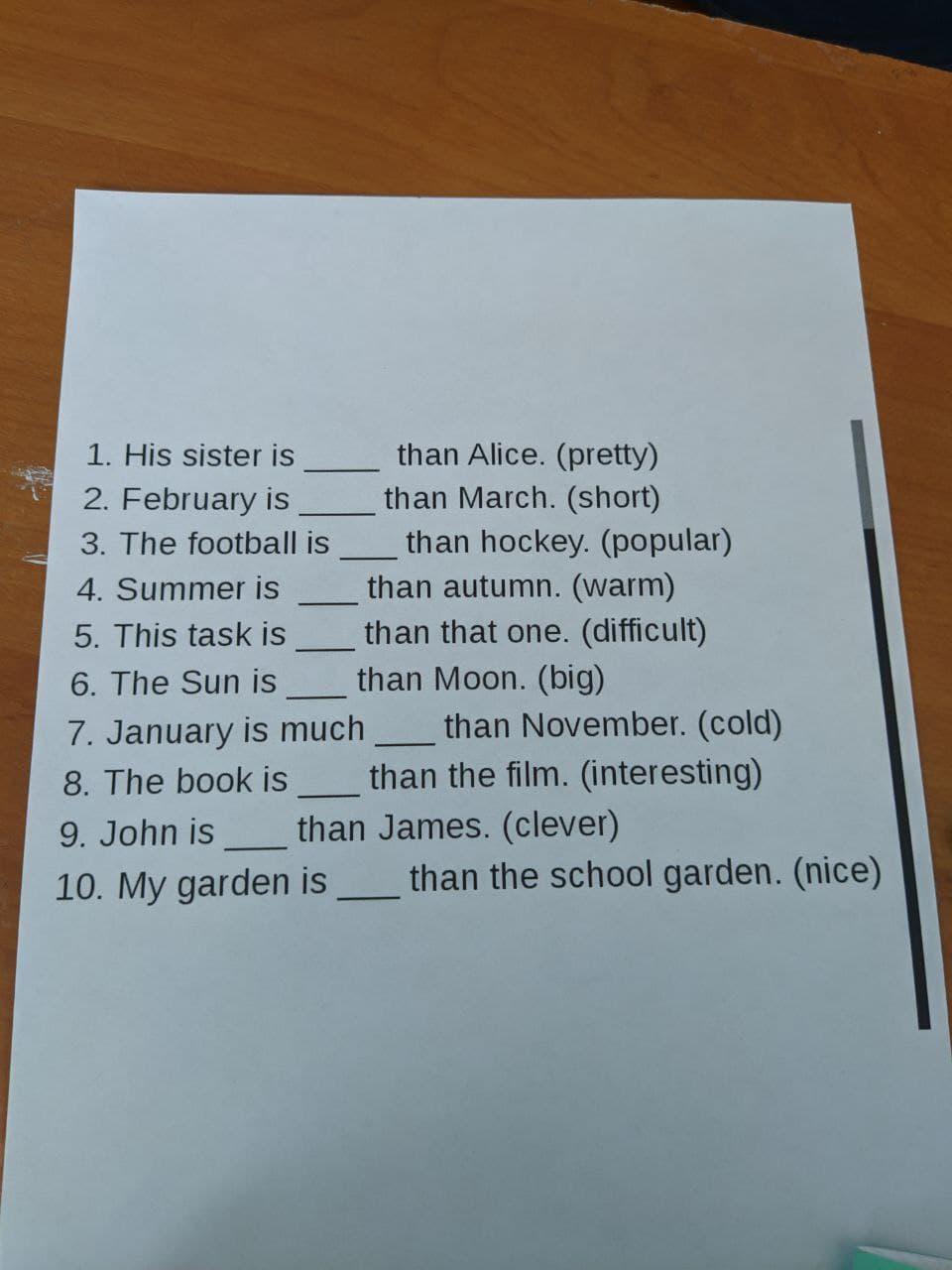 10. sad, sadder, the saddest.