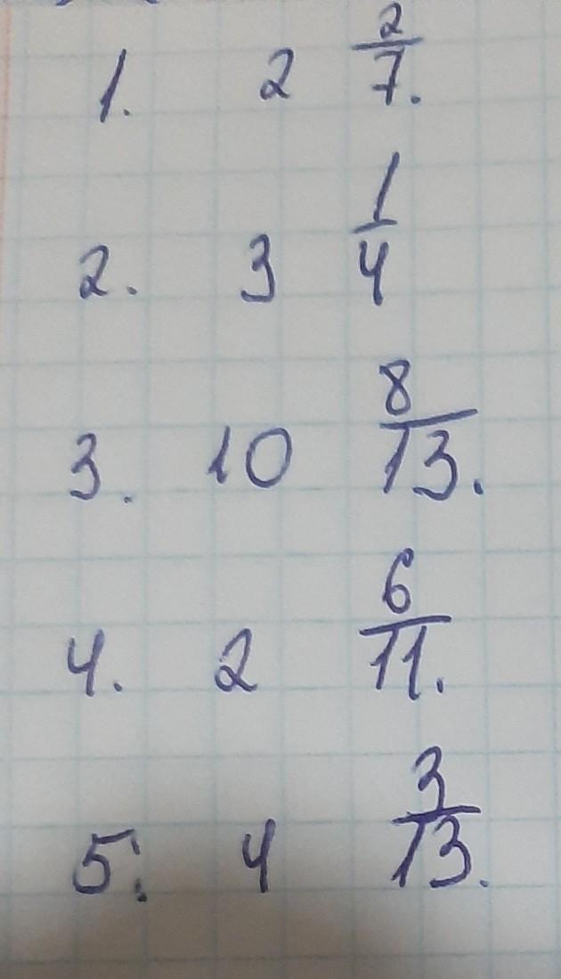 1)2(целых) 2/7 2)3 1/4 4)2 6/11 5)4 3/13