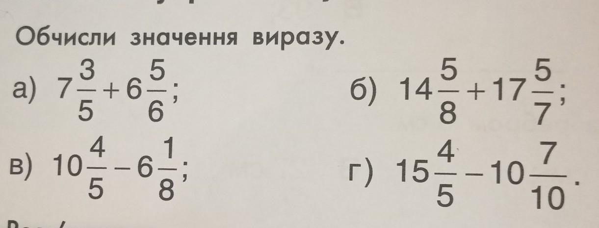 г) 15 цілі 4\5 -10 цілі 7\10 = 5 цілі (4\5-7\10)= 5 цілі (4*2-7*1\10)=5 цілі 1\10