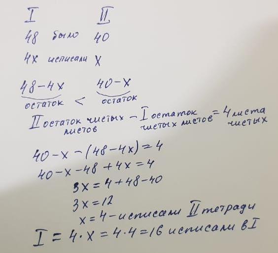 Во второй тетради было 40 листов, значит чистых осталось: 40-х