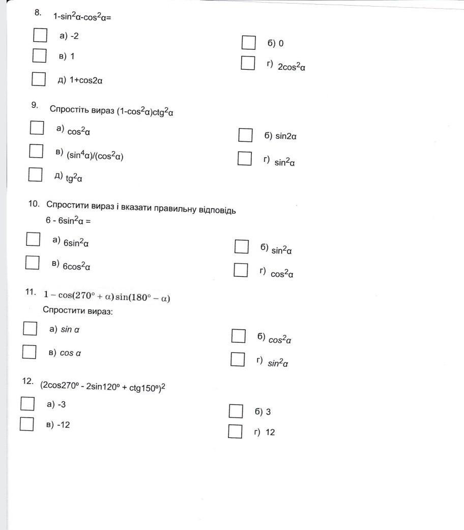9)(1-cos²a)ctg²a=sin²a×(cos²a/sin²a)=cos²a