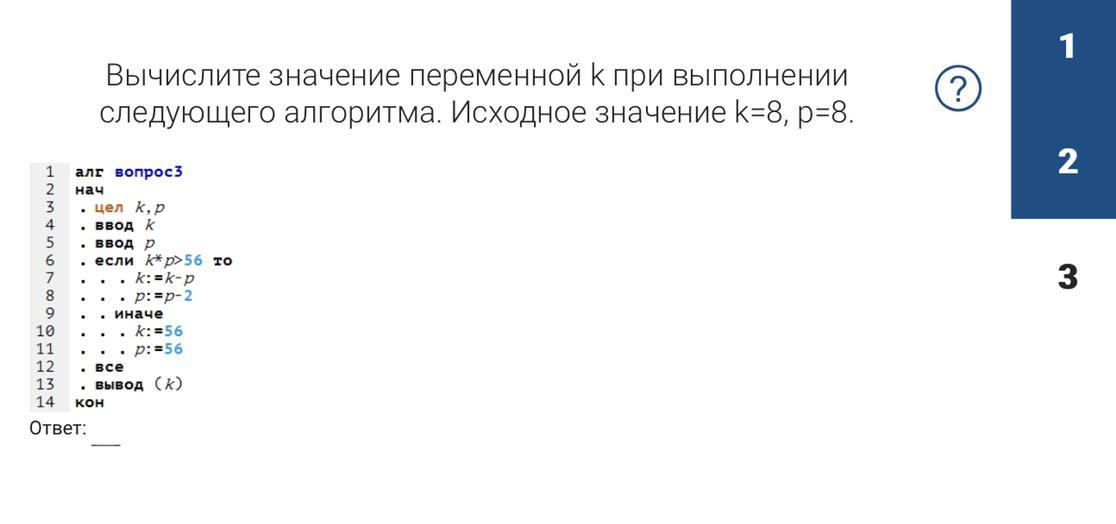 вычислите значение переменной k при выполнении следующего алгоритма. исходные значения k=8 p=8