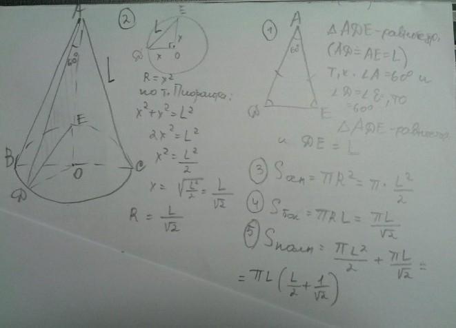 Через вершину конуса проведена плоскость, пересекающая осно- вание по хорде, стягивающей дугу в 90°. Найдите площадь по- верхности конуса, если радиус основания равен V3 см, а угол сечении при вершине конуса- 60°. Помогите пожалуйста