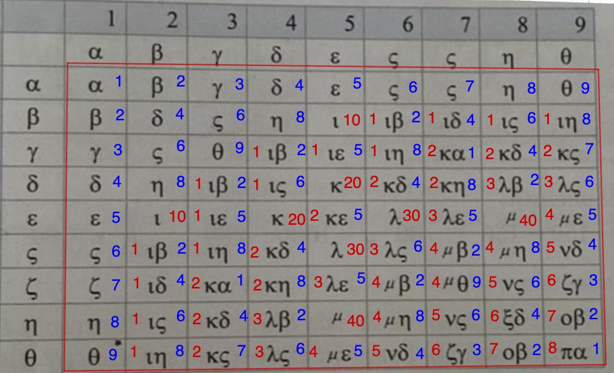 Таблица Пифагора сегодня известна как таблица умножения. Вместо цифр в ней буквы греческого алфавита . Замени букв цифрами . Сможешь ли ты объяснить , как она составлена?