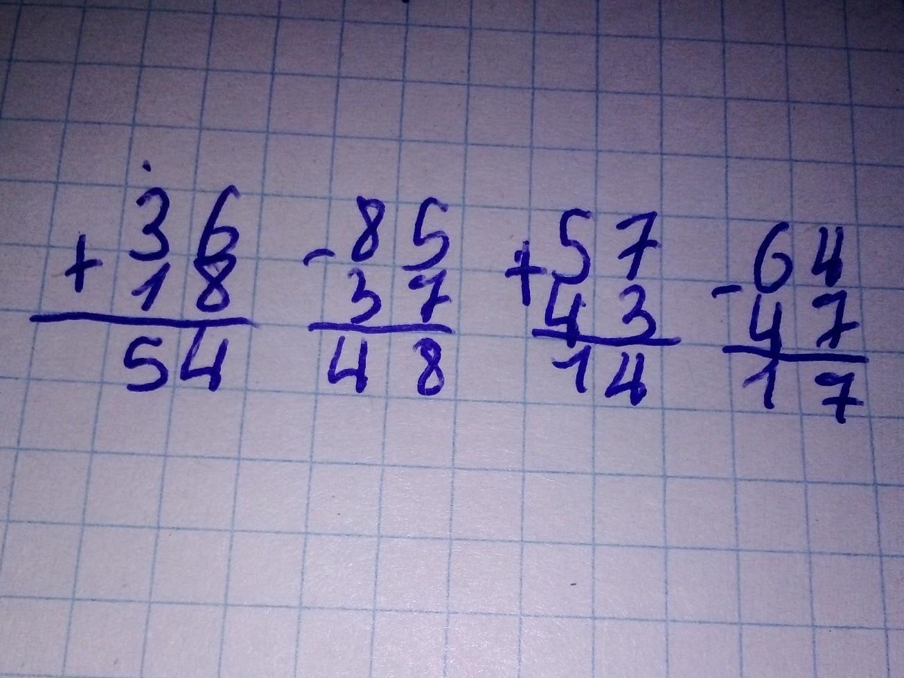 (1 столбик, ответ 56) (2 столбик, ответ 48) (3 столбик, ответ 100) (4 столбик, ответ 17)